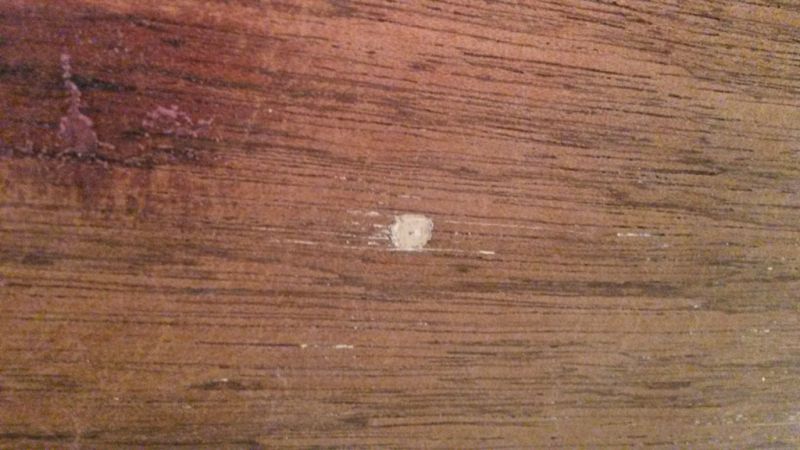 Les têtes de clous ont été enduites avec un enduit blanc apparemment sensible à l'humidité, on voyait toutes les traces dans la peinture là où le bordé a été mouillé.