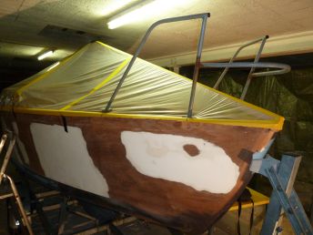 Ensuite je ferai un traitement de coque epoxy comme pour les oeuvres vives. Je ferai de même pour les hiloires comme ça tout l'extérieur sera protégé par l'epoxy.