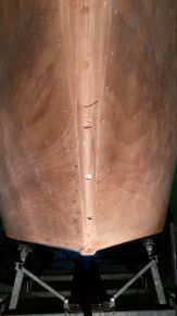 L'étrave a été refaite au niveau de la flottaison et dessous, mais une vis effleure et donc la peinture ne tient pas, et dessous l'enduit se taille, donc tout nettoyer et limer la vis