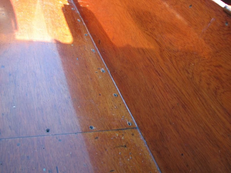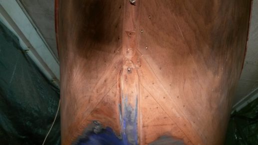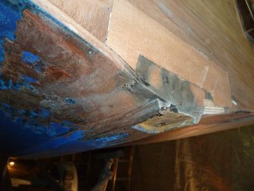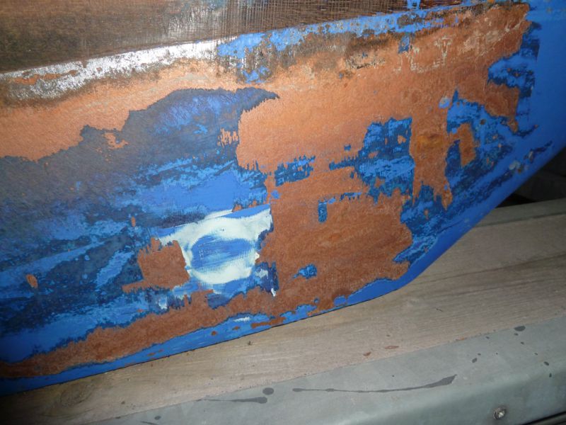 A ce que j'ai pu voir jusque là, le fond est sain, le bois (partie supérieure du saumon de quille) semble en ordre, de même que les bouchains, on verra tout ça quand tout sera poncé jusqu'au bois.