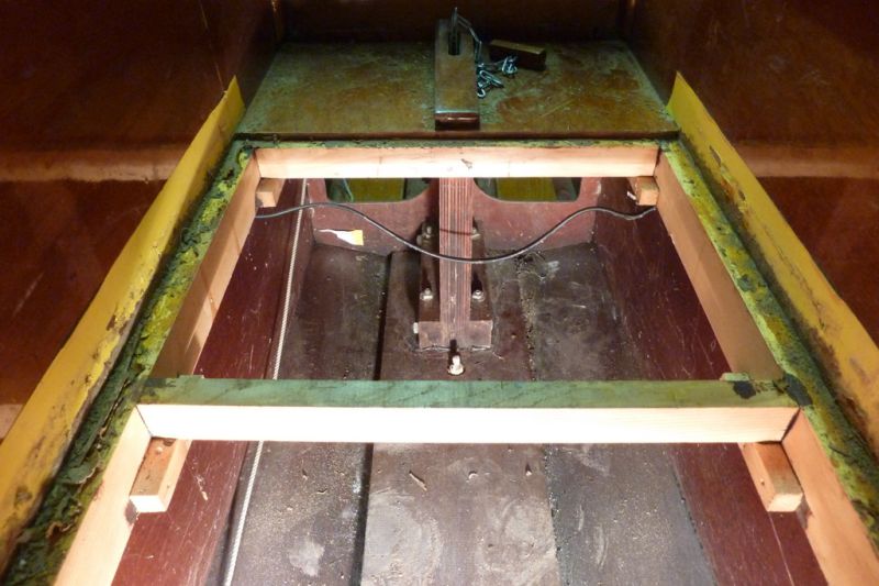 Le puit de dérive après démontage (difficile) du plancher de cockpit scellé par le vernis, faudra trouver une astuce pour le remonter "démontable" et étanche ... tout est en ordre jusque là