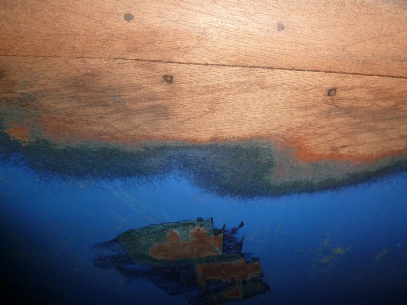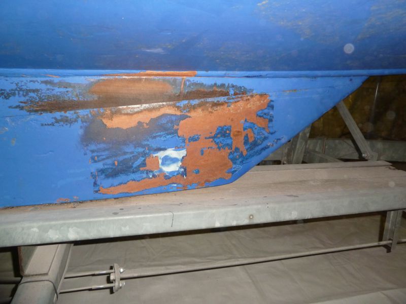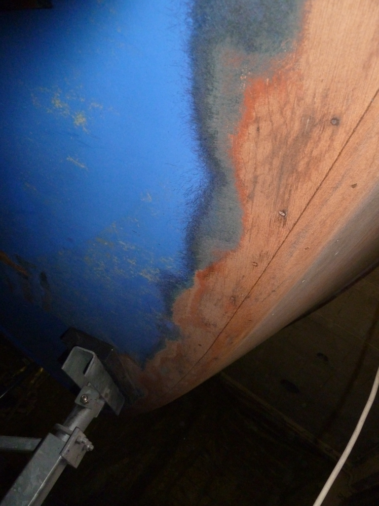 Je n'ai pas sorti le bateau de l'eau avant l'achat, j'aurais peut-être dû ? Même pas, j'avais controlé le contreplaqué depuis l'intérieur et les fonds semblent sains.