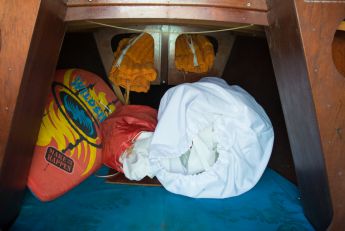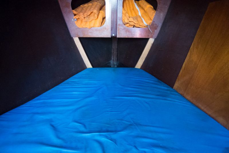 La décoration est d'origine, un set de coussins a été ajouté mais les coussins bleus d'origine ont subi les outrages du temps et sont encore humides, ils sentent le cramoisi. Comme quoi les photos peuvent mentir, ce n'était pas ragoutant.