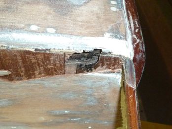 On voit la zone de réparation, mais manifestement le chantier n'a pas pensé à continuer sous le pied de mât et tout faire d'une fois ! D'autre part la pente créée par l'enduit ramène toute l'eau sous le pied de mât, bien vu !